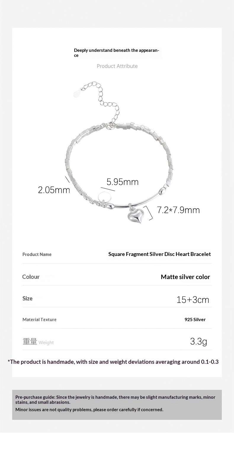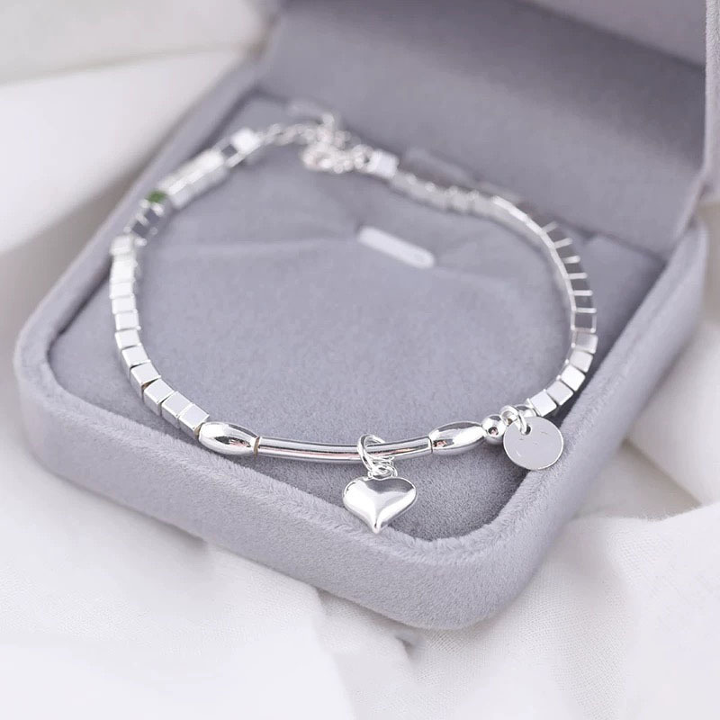 S925 Sterling Silver Square Charm Bracelet